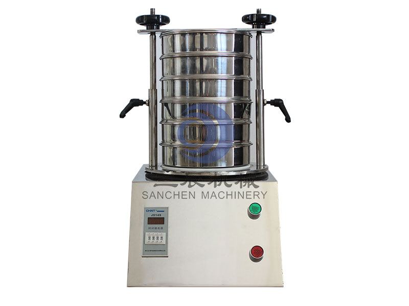 采用立式振动电机作为整机振动源,通过振动电机带动上部振动盘振动,在通过振动盘传导至安放在振动盘上部的筛框上,然后由需要检测目数的筛框把小于筛网孔径的物料筛分至下层筛框,如此层层筛选,使筛框中的物料能非常有效的起到过滤分级、检测目的。具有定时自动关机、可确保试验重复性,功能全面,操作简单的粒度分析仪器,可将一种颗粒料同时精密分出2-7个粒度段,具有噪音小、重量轻、平台操作无须固定等特点。